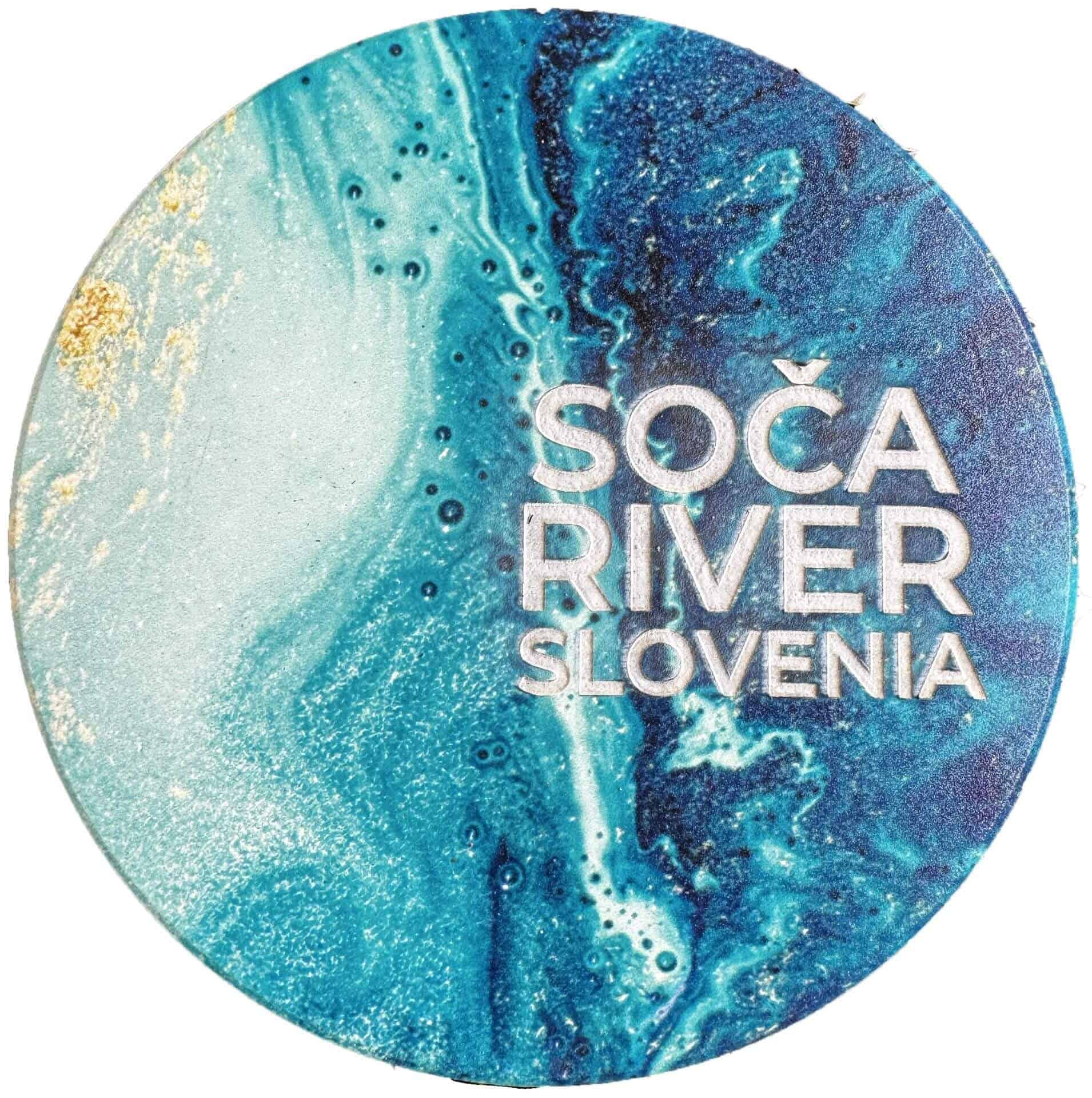 De lasergravure is ontworpen om de iconische tinten van de Soča rivier te weerspiegelen – turquoise, smaragdgroen en saffierblauw. Terwijl de steen zijn ruwe, aardse textuur behoudt, roepen de gegraveerde details de stromende beweging en het glinsterende oppervlak van de rivier op. Het contrast tussen de natuurlijke steen en de levendige gravure creëert een opvallend visueel effect en trekt de aandacht van de kijker naar het ingewikkelde vakmanschap.